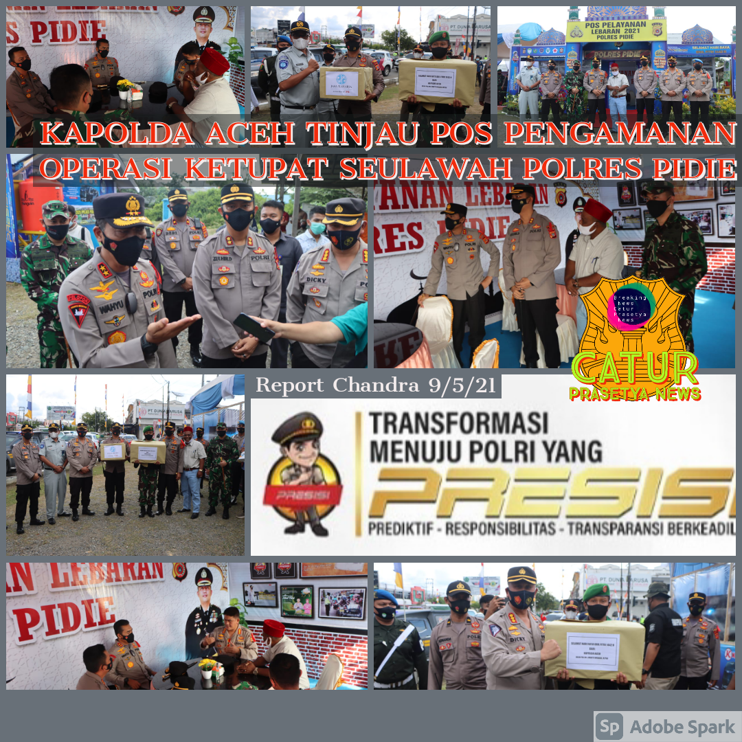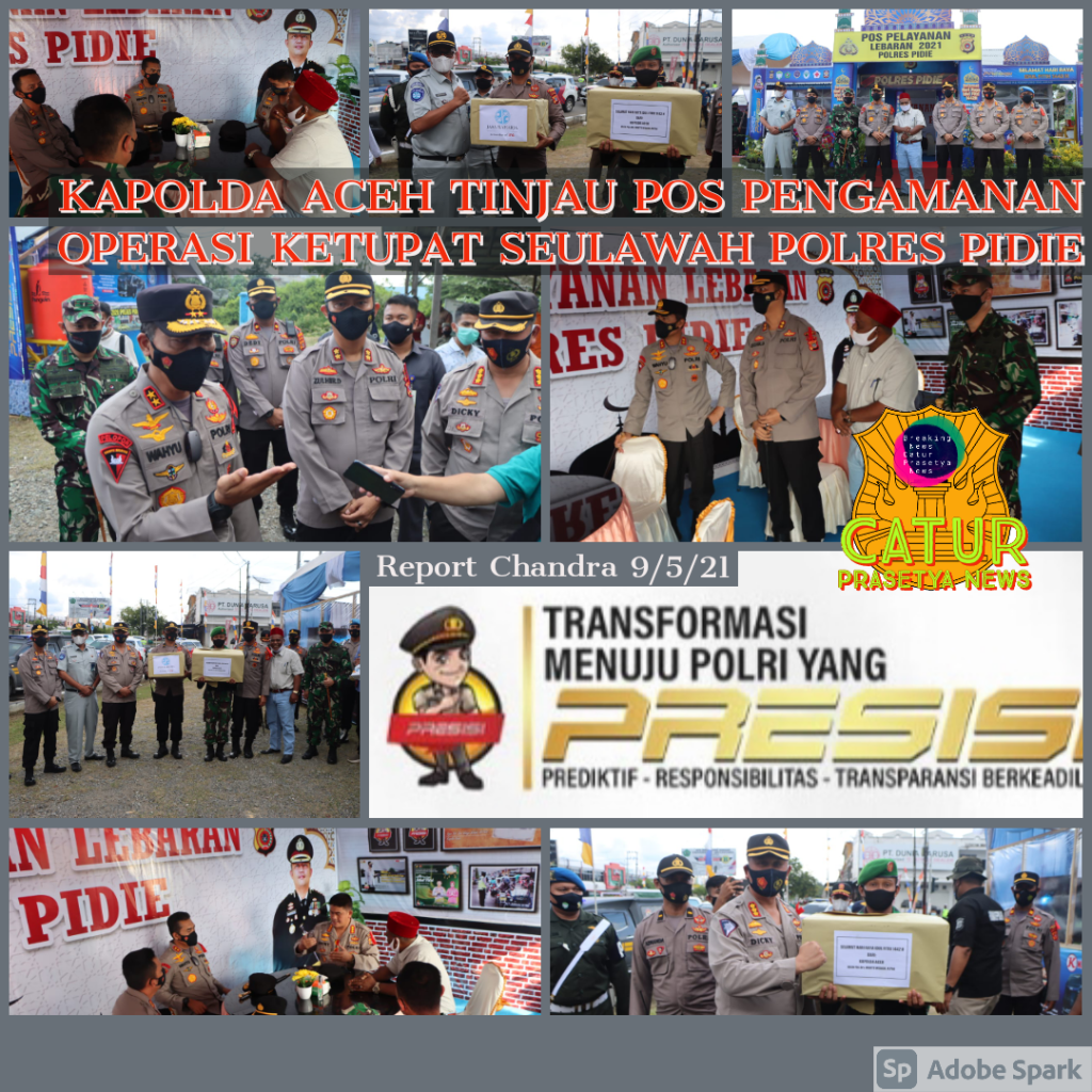Kapolda Aceh Irjen Pol.Drs. Wahyu Widada, M.Phil, Sabtu (8/5/21) sekira pukul 17.00 wib menjnjau dan melakukan pengecekan pos pengamanan operasi ketupat seulawah 2021 Polres Pidie yang didirikan di Simpang Empat Kocin Kota Sigli Kabupaten Pidie.
