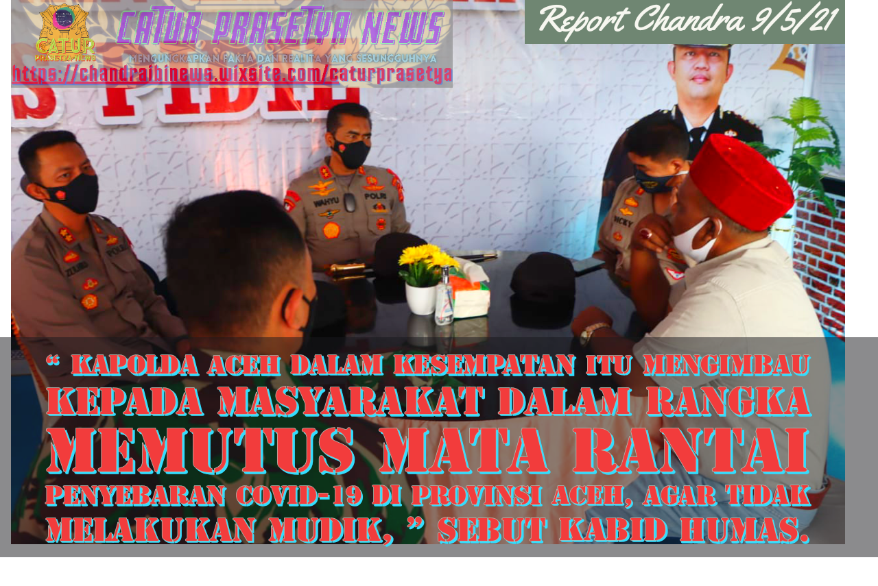 ” Kapolda Aceh dalam kesempatan itu mengimbau kepada masyarakat dalam rangka memutus mata rantai penyebaran Covid-19 di Provinsi Aceh, agar tidak melakukan mudik, ” sebut Kabid Humas.