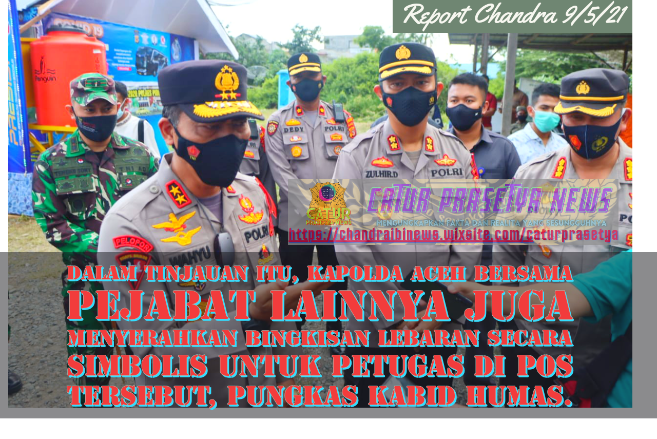 Dalam tinjauan itu, Kapolda Aceh bersama pejabat lainnya juga menyerahkan bingkisan lebaran secara simbolis untuk petugas di pos tersebut, pungkas Kabid Humas.