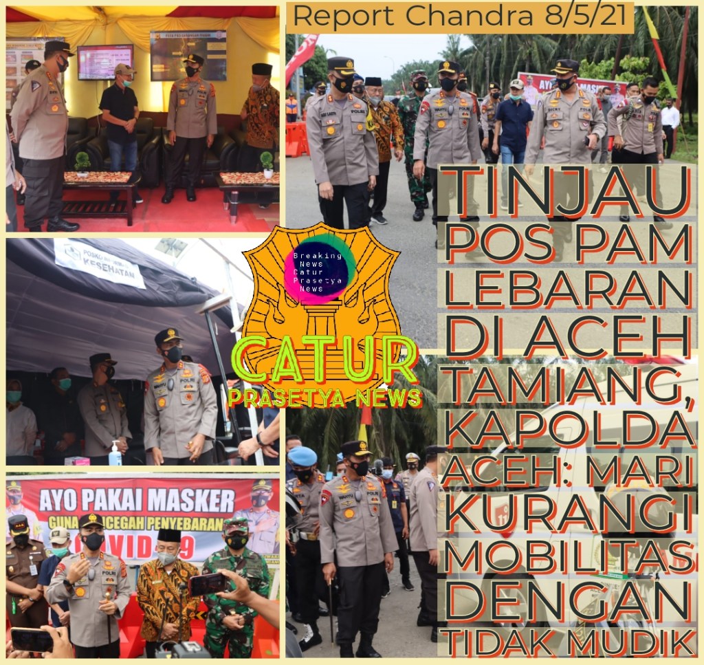 Hal tersebut disampaikan Kapolda Aceh melalui Dirlantas Polda Aceh Kombes Pol. Dicky Sondani, S. I. K., M. H yang didampingi Kabid Humas Polda Aceh Kombes Pol Winardy, S. H., S. I. K., M. Si, saat meninjau kesiapan Personel di Pos Pam Operasi Ketupat Seulawah di perbatasan Aceh – Sumut, Kecamatan Seumadam, Aceh Tamiang, Sabtu (8/5/2021).