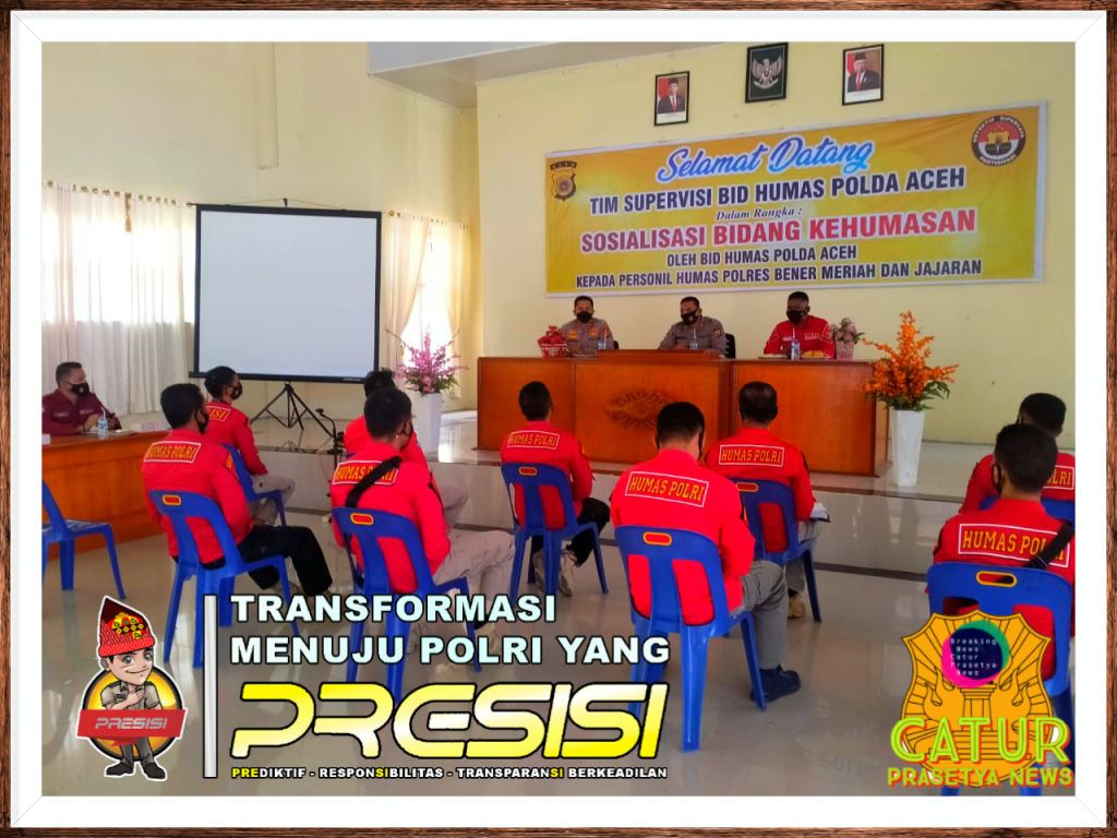 Banda Aceh – catur Prasetya News. Com Tim supervisi dari Bid Humas Polda Aceh yang dipimpin Kasubbid PID AKBP Hermansyah mensosialisasikan fungsi kehumasan ke sejumlah Polres jajaran yang berlangsung selama 5 hari, yaitu dari tanggal 7 – 11 Juni 2021.