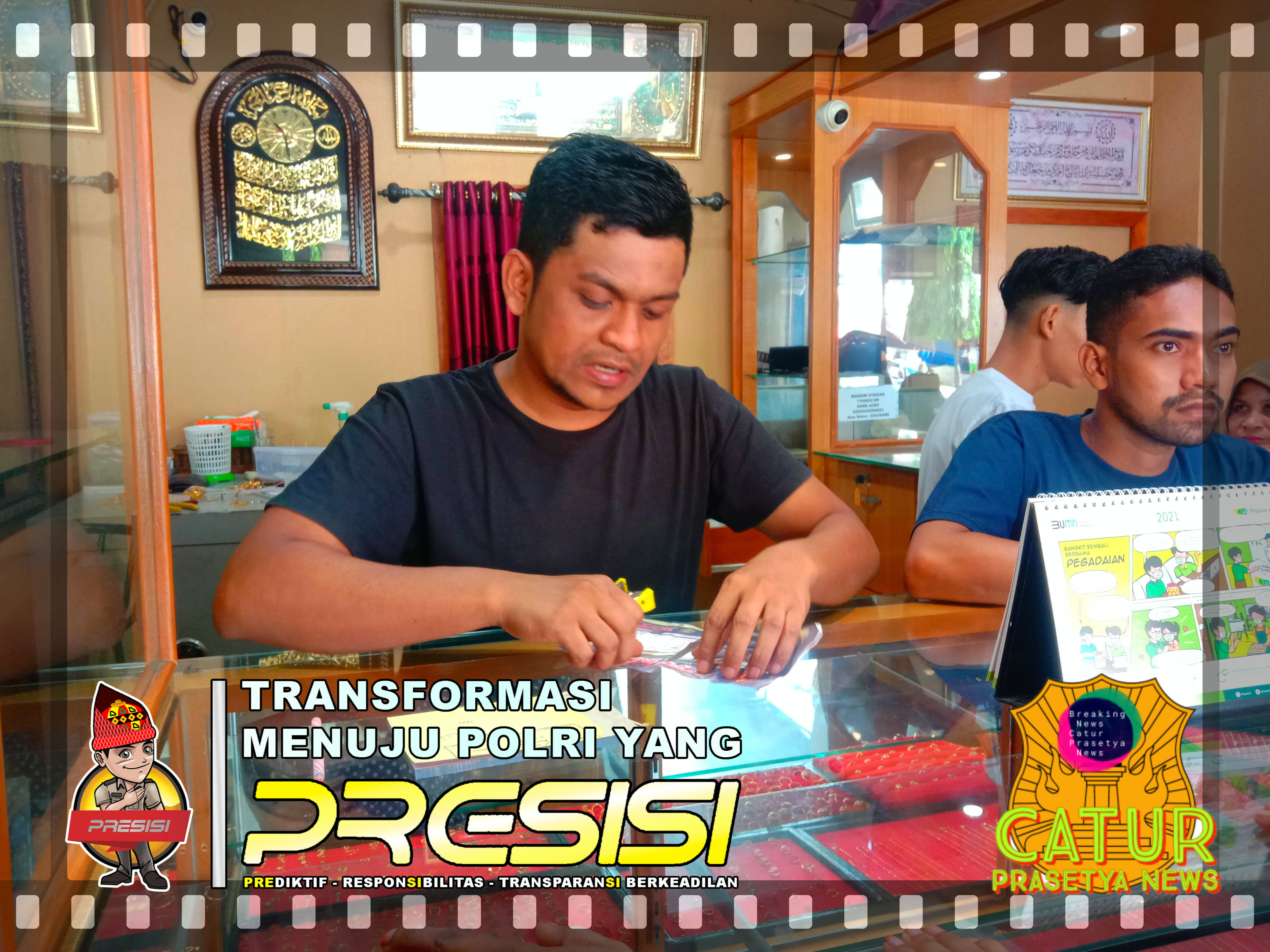 Di suatu hari ibu rumah tangga yang bereninsial S yang pernah membeli emas sekitar awal bulan Maret 2021mendatangi dan menggadaikan emas seberat 6 gram emas murni seharga Rp. 5.700.000 dengan harga Gadai emas, pinjam uang sebesar Rp. 2.500.000,00