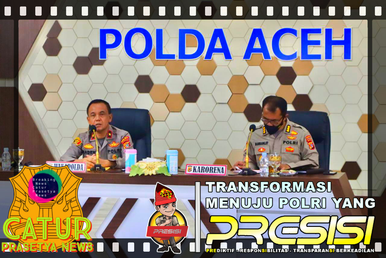 Banda Aceh – Catur Prasetya News. Com Menjelang Hari Ulang Tahun (Hut) Bhayangkara ke 75, Wakapolda Aceh Brigjen Pol. Drs. Raden Purwadi, S. H, mewakili Kapolda Aceh Kapolda Aceh Irjen Pol. Drs. Wahyu Widada, M. Phil, menggelar rapat dengan jajarannya, Jum’at (18/6/21).