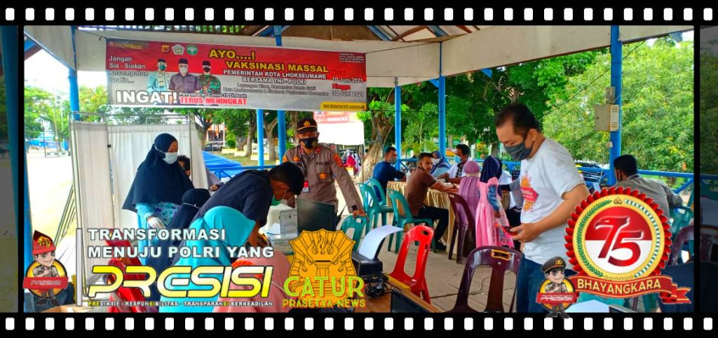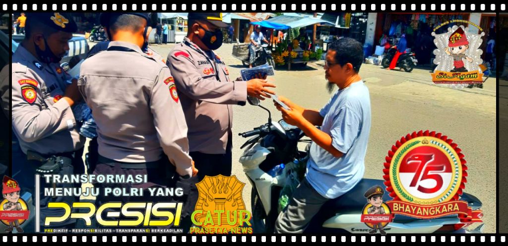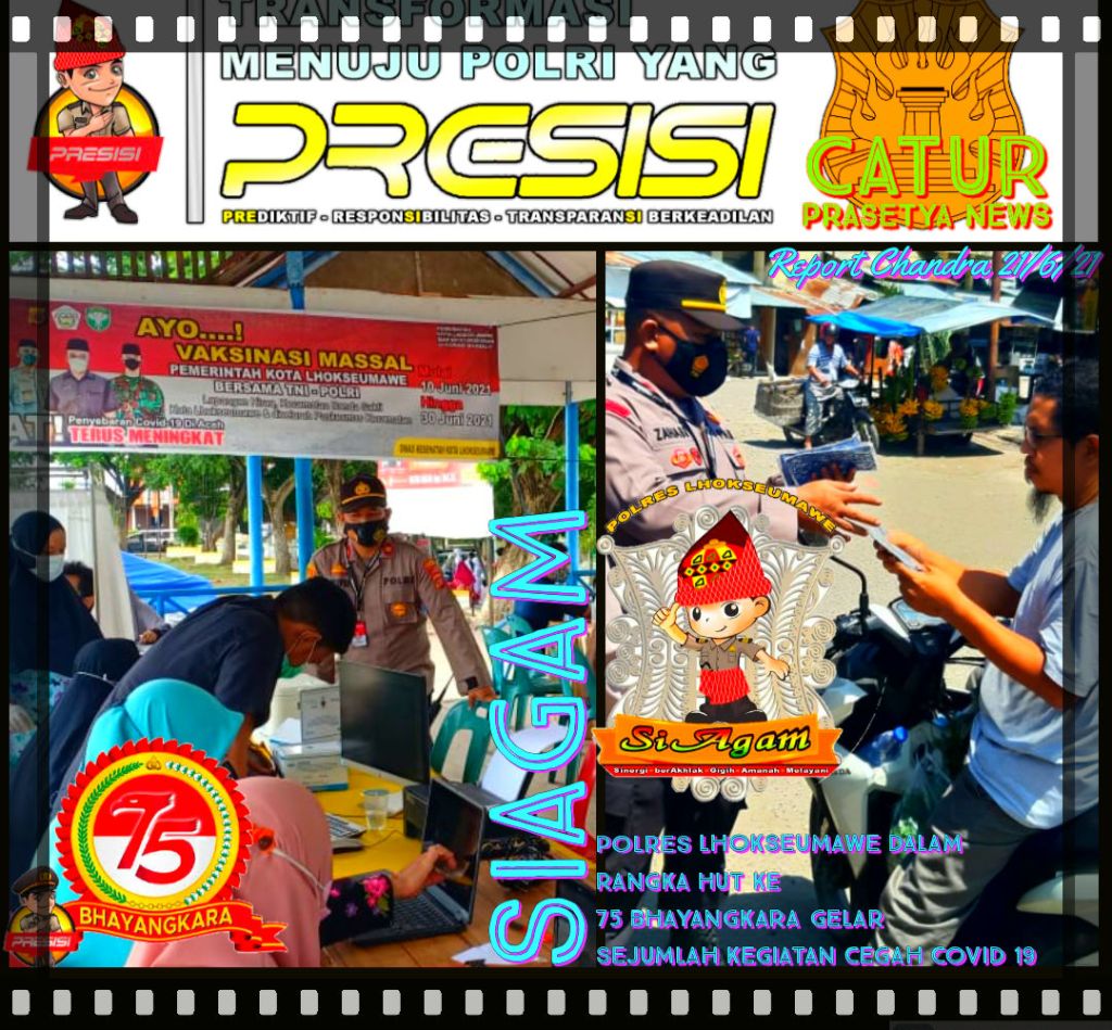 Lhokseumawe – Catur Prasetya com Kepolisian Resor Lhokseumawe membagikan 10 ribu masker kepada masyarakat dalam rangka Hut Bhayangkara ke 75 khususnya di beberapa titik dalam wilayah hukum Polres Lhokseumawe, Rabu (16/6).
