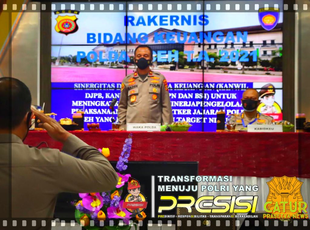 Banda Aceh – Catur Prasetya News Rakernis Fungsi Bidang Keuangan ( Bidkeu) Polda Aceh Tahun 2021 digelar selama 2 hari di Gedung Presisi Polda Aceh, Senin (5/7/21).
