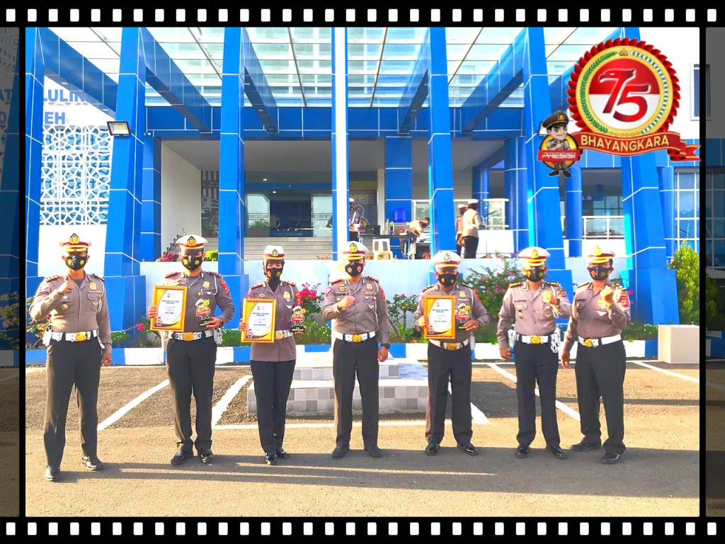 Banda Aceh – Catur Prasetya News Dalam rangka HUT ke 75 Bhayangkara dan keberhasilannya mewujudkan Kawasan Tertib Lalu Lintas (KTL), tiga Kasat Lantas terima plakat dan piagam penghargaan dari Dirlantas Polda Aceh, Senin (5/7/2021).