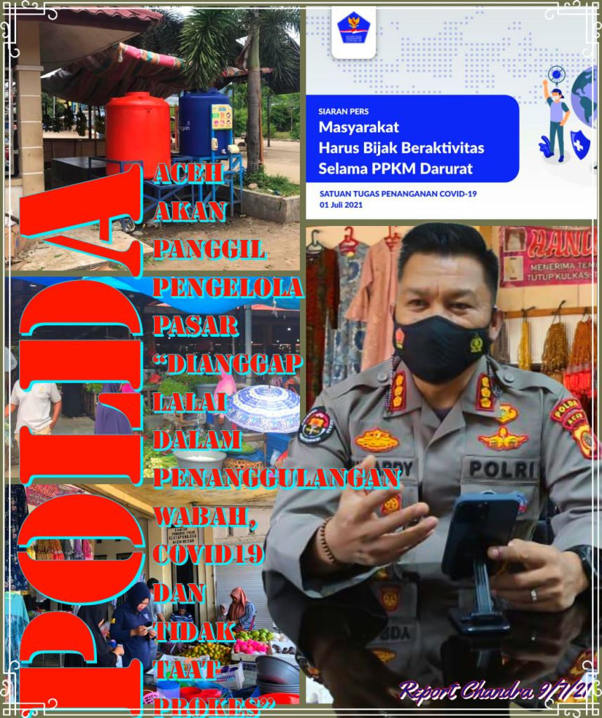 Dalam monitoring tersebut pernah ditemukan berbagai pelanggaran yang menyebabkan dipanggilnya para pengelola pasar oleh Ditreskrimmum Polda Aceh yang juga salah satu unsur dari Satgas Gakkum Covid-19 Aceh.