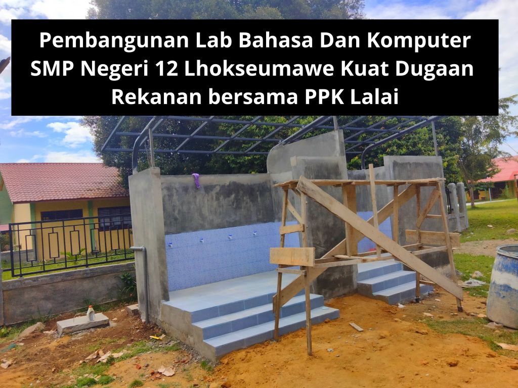 Salahsatunya Pembangunan Ruang Laboratorium Bahasa dan Komputer SMP Negeri 12 Lhokseumawe Konstruksi 2 Lantai (OTSUS) Proyek Pembangunan Yang Berdiri Di halaman Pelataran Sekolah SMP Negeri 12 LHOKSEUMAWE yang terletak Desa Ujung Blang Kecamatan Banda Sakti Kota Lhokseumawe
