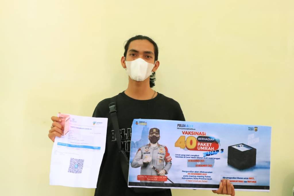 Takengon – Catur Prasetya News Markas Komando Untuk meningkatkan Animo Masyarakat agar tidak ragu untuk vaksin. Oleh Sebab itu Polda Aceh kembali berikan 40 Paket Umroh Tahap III bln Desember 2021 bagi peserta Vaksin Covid 19 periode 1 Desember s/d 25 Desembeber 2021 .