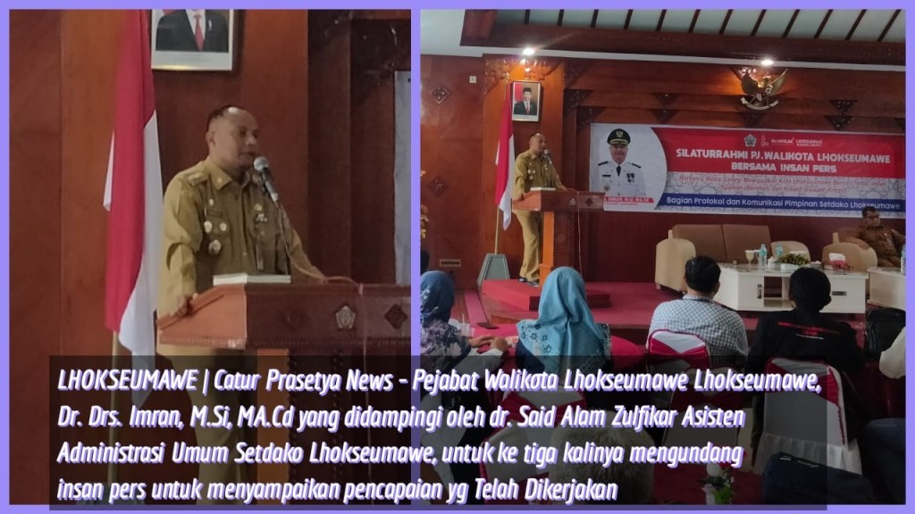 LHOKSEUMAWE | Catur Prasetya News - Pejabat Walikota Lhokseumawe Lhokseumawe, Dr. Drs. Imran, M.Si, MA.Cd yang didampingi oleh dr. Said Alam Zulfikar Asisten Administrasi Umum Setdako Lhokseumawe, untuk ke tiga kalinya mengundang insan pers untuk menyampaikan pencapaian yg Telah Dikerjakan dan beberapa informasi tentang Penertiban yang dilaksanakan salah satu nya Penertiban Kendaraan Transportasi Roda 4 milik Pemko, serta Turut pula memaparkan perencanaan kebijakan terus dilakukan, acara yang digelar lantai tiga tepatnya di Aula Pemko Kota Lhokseumawe, sekiranya pukul 13.00 WIB,Selasa,(18/10/2022).