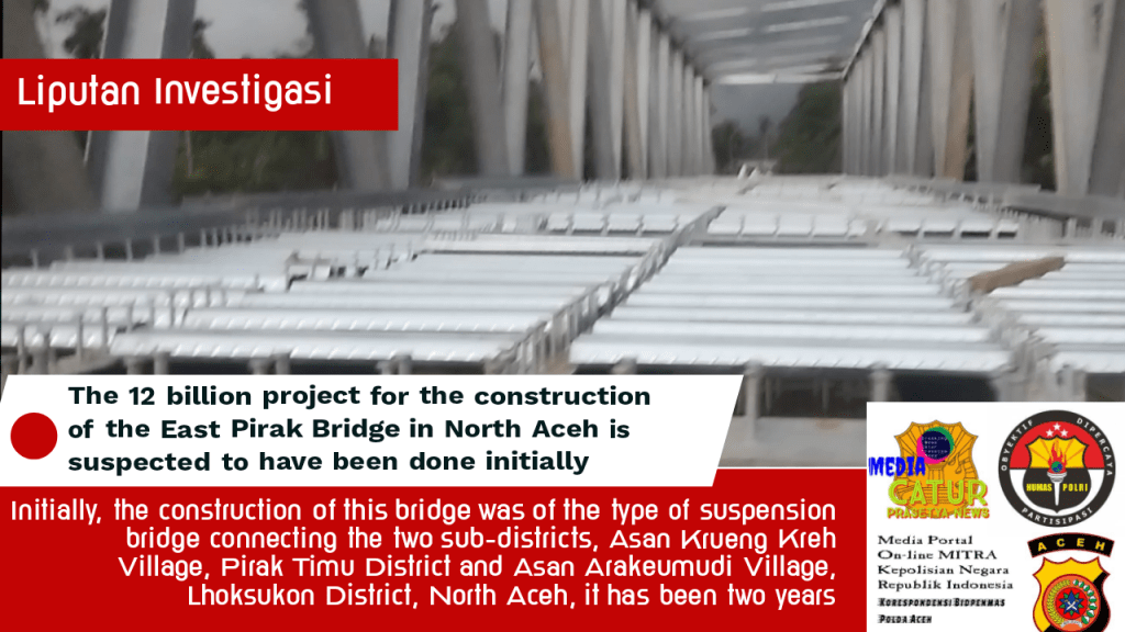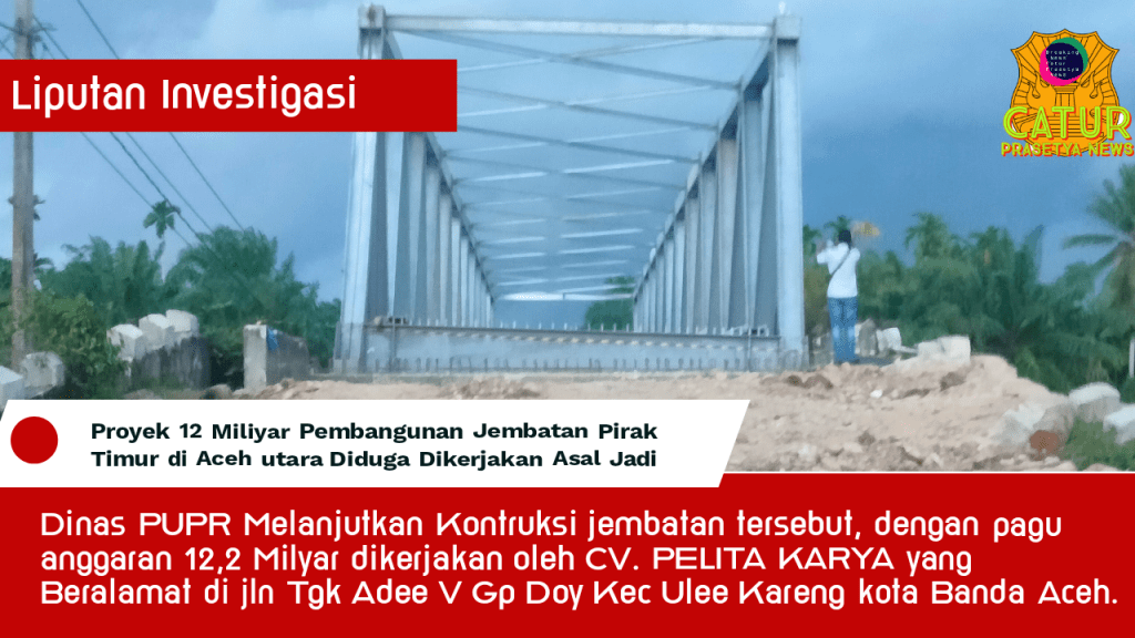 Lhoksukon| Catur Prasetya News – Proyek Infrastruktur Jembatan Penghubung Gampong Asan Krueng Kreh dengan Gampong Asan LB dikecamatan Pirak Timu Kab Aceh Utara yang dibawah proyek pembangunan jembatan dibawah SKPA Pekerjaan Umum dan Penataan Ruang (PUPR) Pemkab Aceh Utara Nusa diduga dikerjakan asal jadi. Pasalnya, proyek tersebut dikerjakan tidak sesuai SOP sebagaimana mestinya.