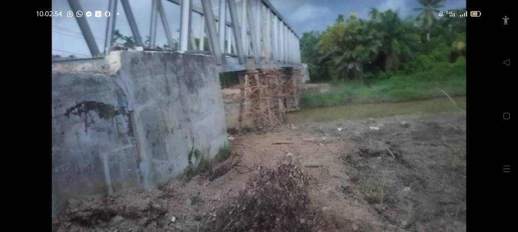 Bahkan ironisnya Kondisi abutment atau kepala jembatan, terlihat jelas bagian konstruksi bawah jembatan saat ini (i31/8/23) Kondisinya sudah retak, Dimana retaknya terlihat disisi kanan dan sisi kiri .