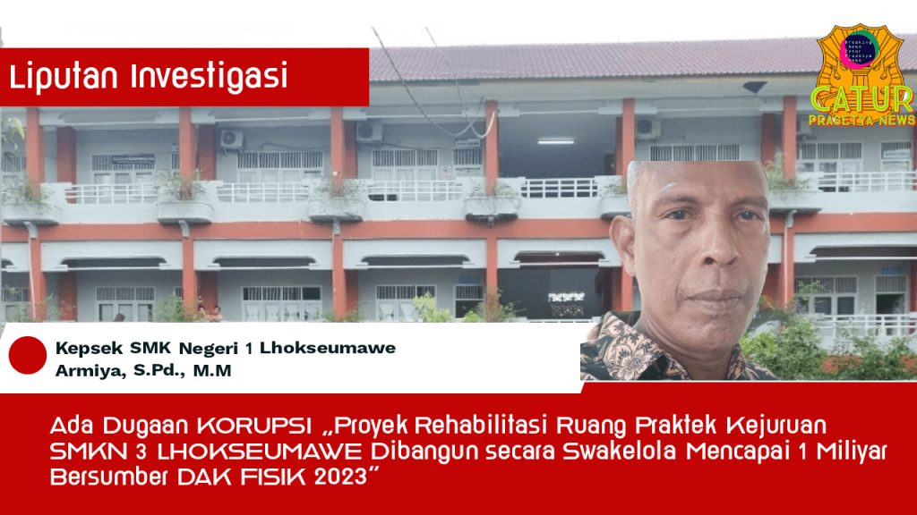 LHOKSEUMAWE | Catur Prasetya News – Dalam menunjang kegiatan belajar mengajar dinas pendidikan harus memaksimalkan untuk Pembangunan gedung sekolah yang layak dan aman ,maka bangunan gedung sekolah itu harus safety sebab menyangkut keselamatan nyawa siswa siswi SMKN 3 LHOKSEUMAWE hanya untuk menjaga hal hak yang tidak diinginkan semua .pihak terjadi apa lagi dapat menelan korban jiwa