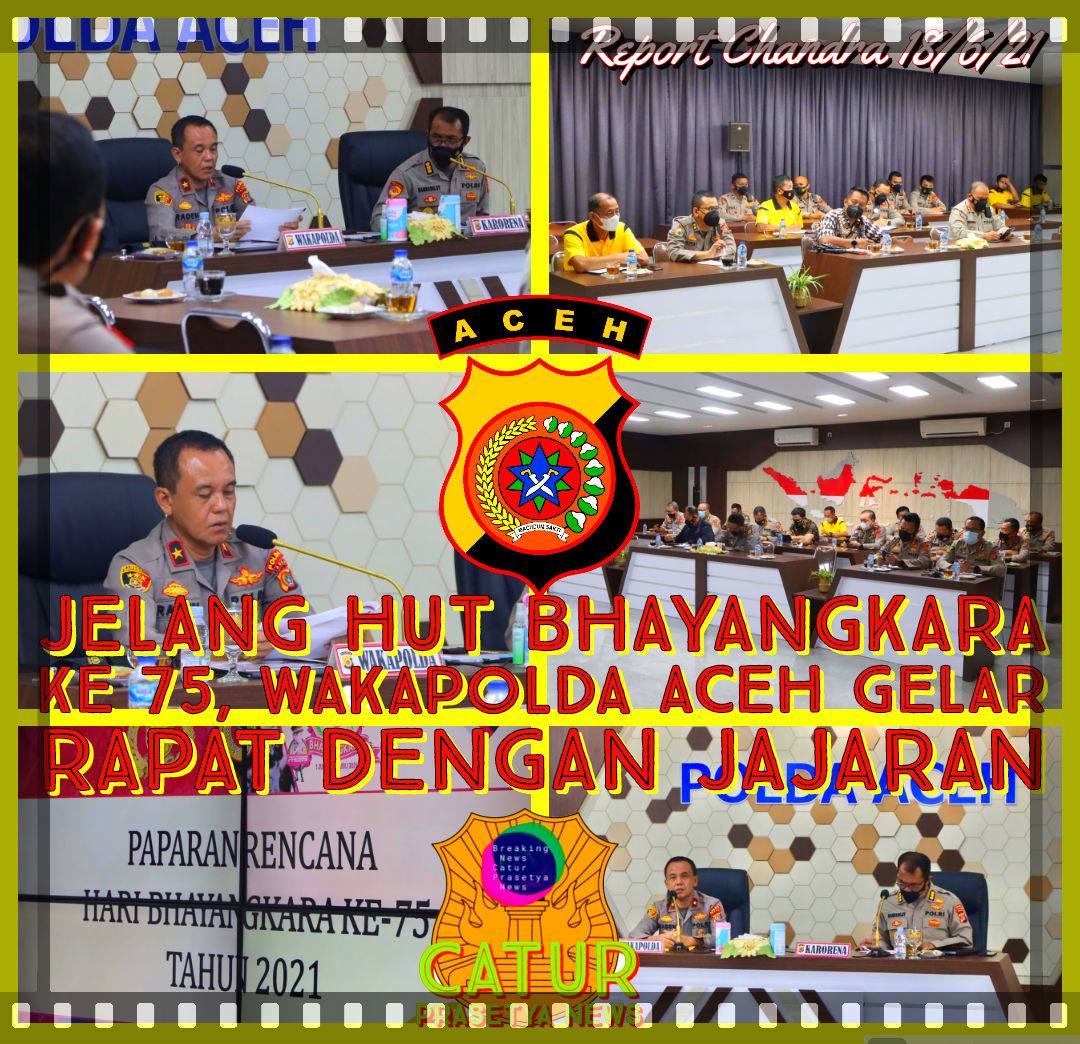 Kabid Humas Polda Aceh Kombes Pol. Winardy, S. H., S. I. K., M. Si, dalam keterangannya mengatakan, Rapat yang digelar di Aula Machdum Sakti, Mapolda Aceh itu langsung dipimpin Wakapolda Aceh dan didampingi Karo Rena Polda Aceh Kombes Pol. Bambang Syafrianto, S. I. K, dan dihadiri sejumlah Pejabat Utama dan personel Polda Aceh lainnya yang merupakan panitia Hut Bhayangkara ke 75.